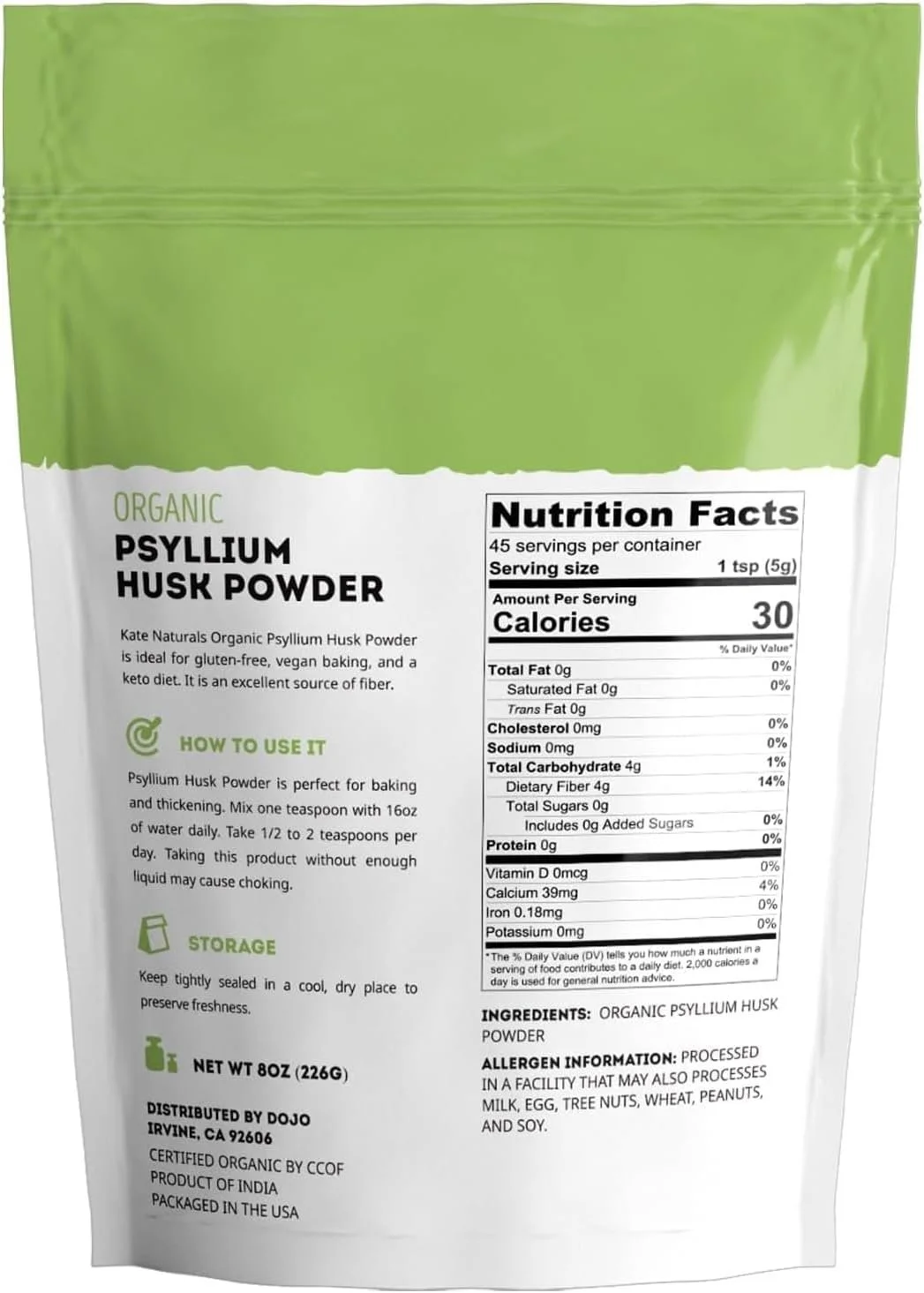 Psyllium Husk Powder 4 g per teaspoon Powder form for flexible dosing or difficulty swallowing capsules